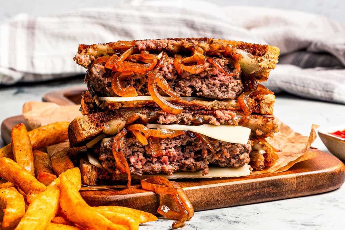 You’ll love this traditional patty soften recipe with caramelized onions and gooey, melty cheese grilled between slices of rye bread. It’s like a juicy burger meets a grilled cheese!
