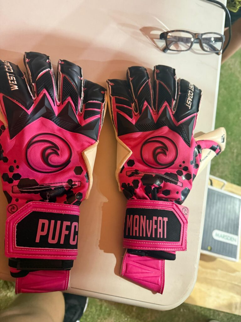 So I’ve all the time performed goalkeeper rising up and I all the time want a pair of fine goalie gloves. With this new season beginning, I needed to get some gloves that remind me of why I’m right here and determined to get the MAN v FAT on them and my crew’s initials PUFC (Porcinos United Soccer Membership). They’re from West Coast Goalkeeping so if you happen to want a superb pair of gloves I like to recommend them.