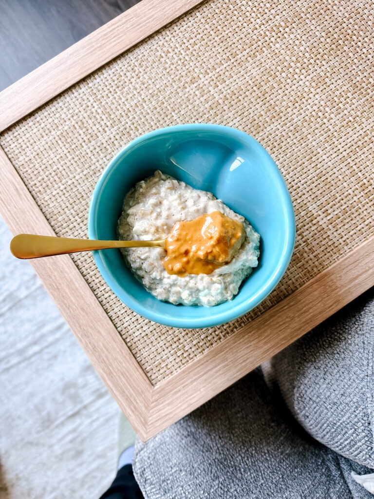 Went with oatmeal because of the sluggish morning. With cottage cheese combined in and PB on prime.