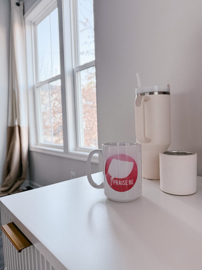 I awakened naturally simply earlier than 7 and headed down for espresso on the pc. Love my Handmaid’s Story mug, nevertheless it’s beginning to fade! I’m additionally one episode away from the finale of that collection and assume it’s the most effective made exhibits of all time. Laborious to look at, sure, however nicely finished. Sensible performing.