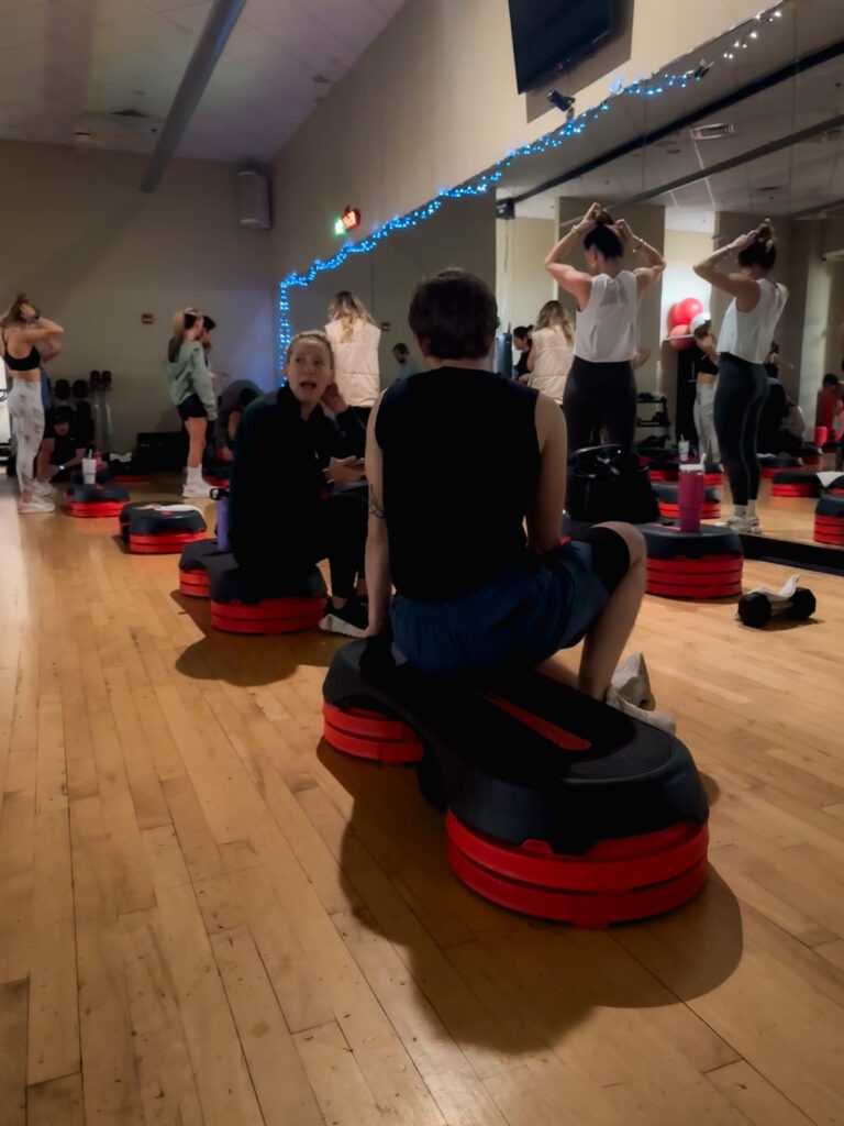 I didn’t take a pic on the fitness center, however fortunately my pal Ivy did! Candidly speaking earlier than class began. Class was onerous, per regular!